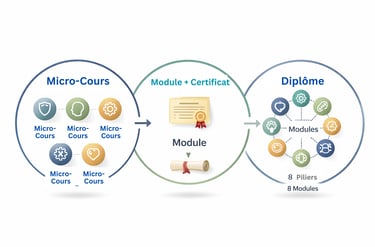 Chaque module est ensuite approfondi au moyen de micro-cours ciblés qui examinent en détail des dimensions spécifiques de ce pilier.