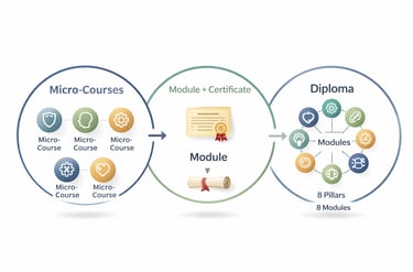Each module is then explored through focused micro-courses that examine specific aspects of that pillar in depth.